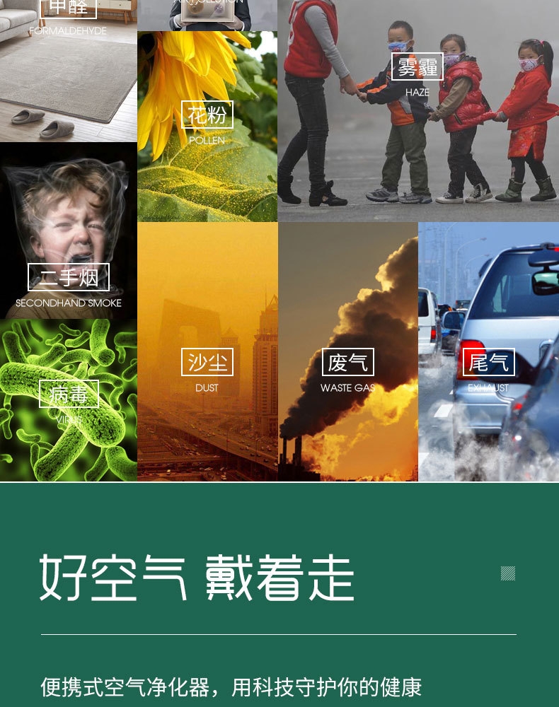 迷你凈化器可以當(dāng)項鏈佩戴,男女老少皆可使用,功效包括除甲醛、除污染顆粒,甚至除甲流病毒、細菌等。