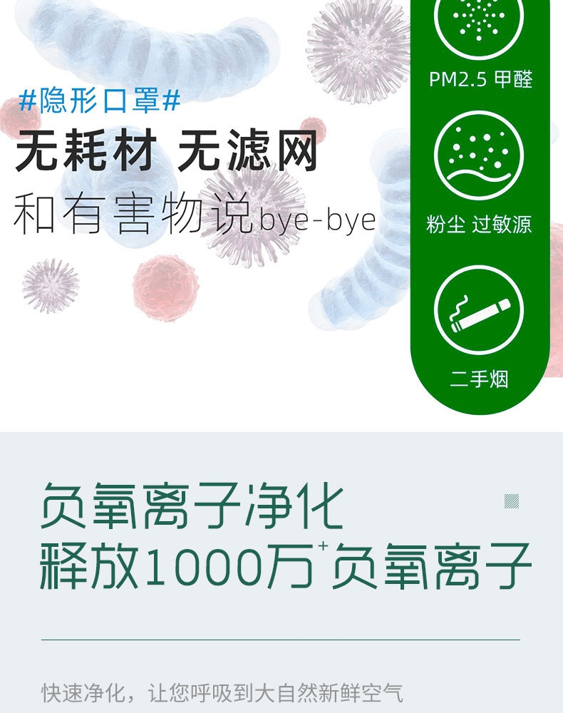 負離子能夠有效的預(yù)防,殺菌,改善肺功能。