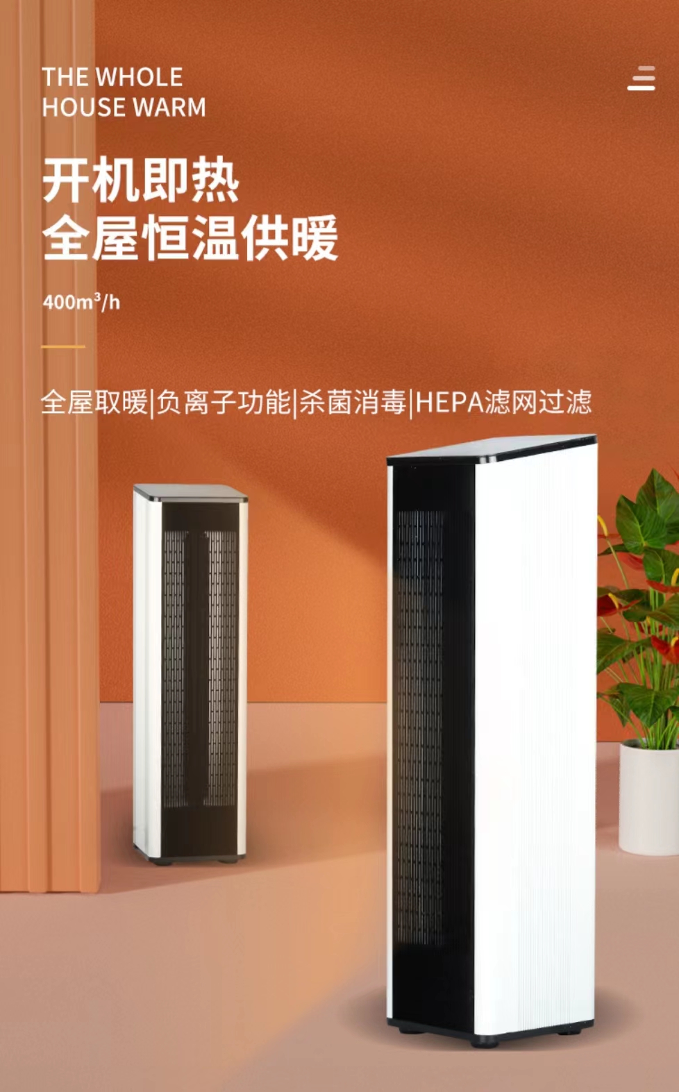 (2)是利用石墨烯空氣對流和熱輻射的方式對房間進行加熱,開機后,只需要3秒鐘,熱空氣就會源源不斷地向上升。通過超長的出風(fēng)口,然后形成熱幕簾。