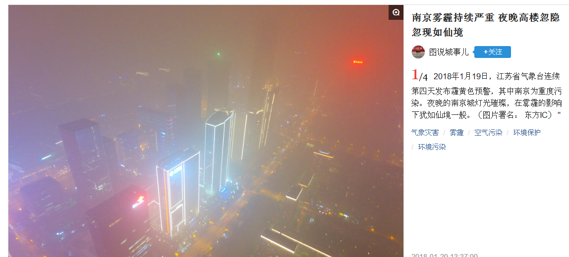 南京霧霾持續(xù)嚴重 夜晚高樓忽隱忽現(xiàn)如仙境