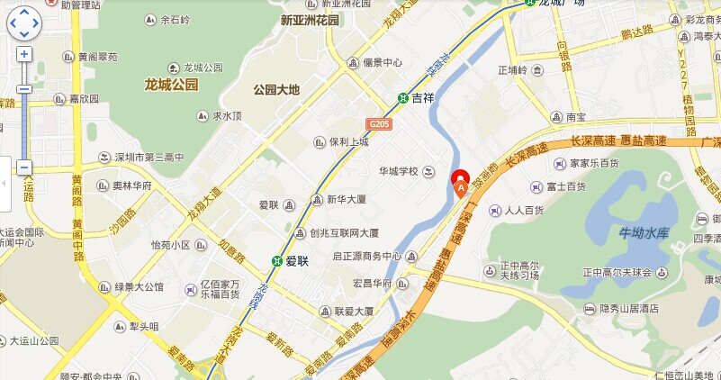 龍崗區(qū)地鐵吉祥站附近全景圖,位于右上角紅心A處